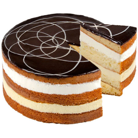 Indulge in an American classic! Our Boston Cream Cake features layers of vanilla cake, smooth vanilla bean pastry cream, and real whipped cream. Finished with a rich, dark chocolatey glaze.